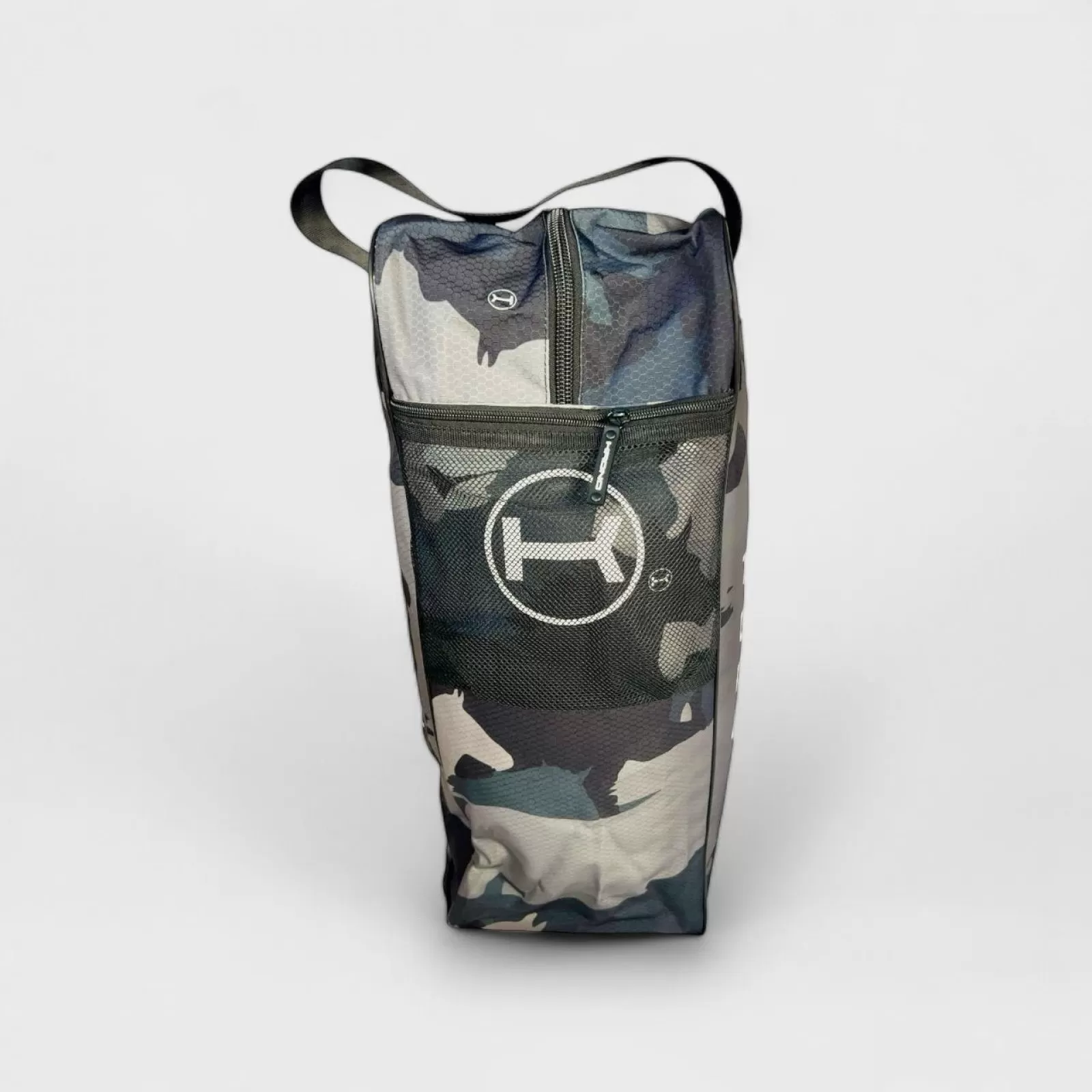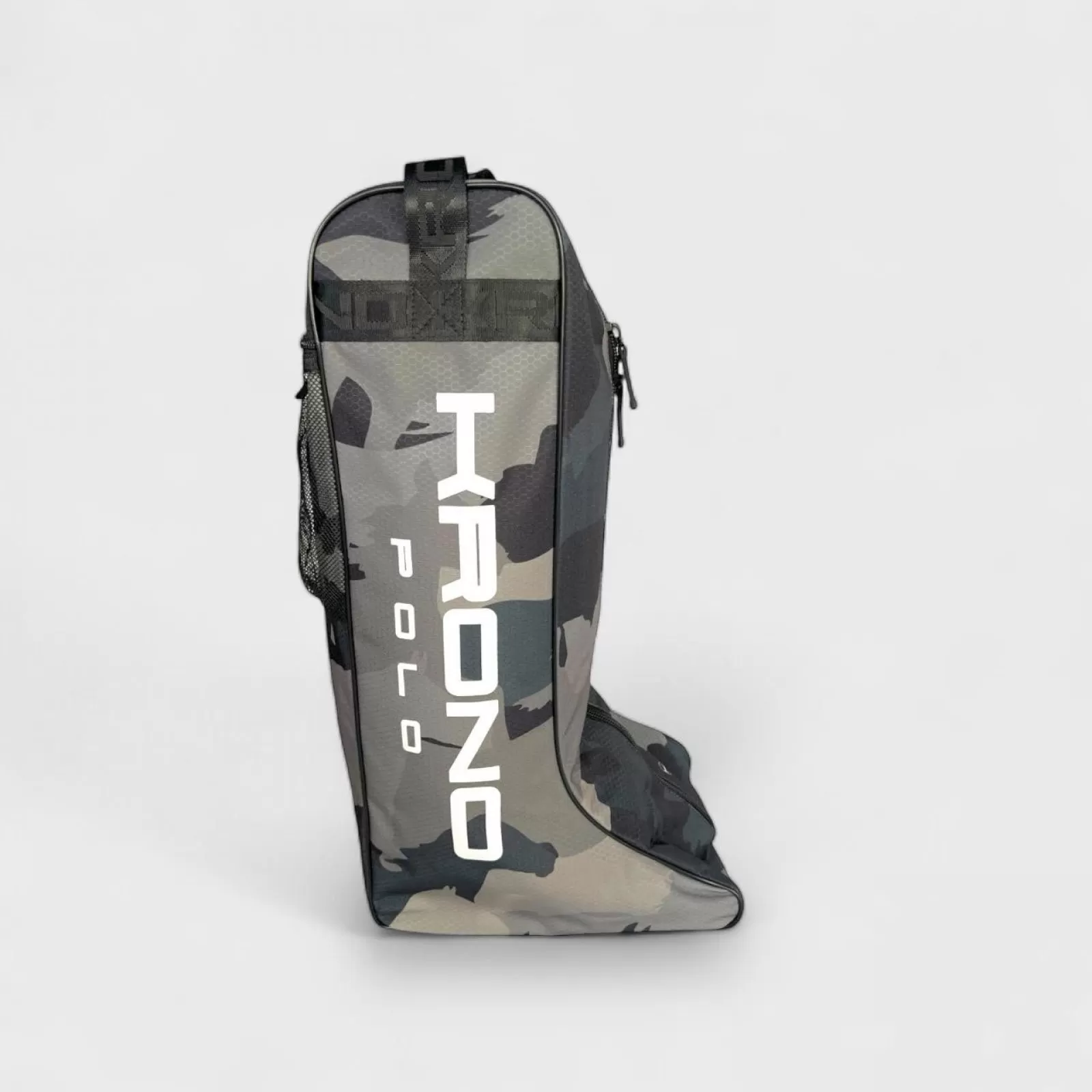 El bolso Krono Polo, con nuestro camuflaje de caballos característico, lo hace el bolso perfecto para las aventuras cortas. En él puedes meter tu kit de polo, como tus botas, rodilleras, casco de polo, coderas, guantes, gafas y otros objetos esenciales, de manera que puedas llevarlo con facilidad cuando sea tiempo de jugar chukkas. Incluso, añadimos un compartimento especialmente diseñado para que puedas evitar que tu casco de polo entre en contacto con tus botas, que pueden quedar sucias después de un juego de polo.