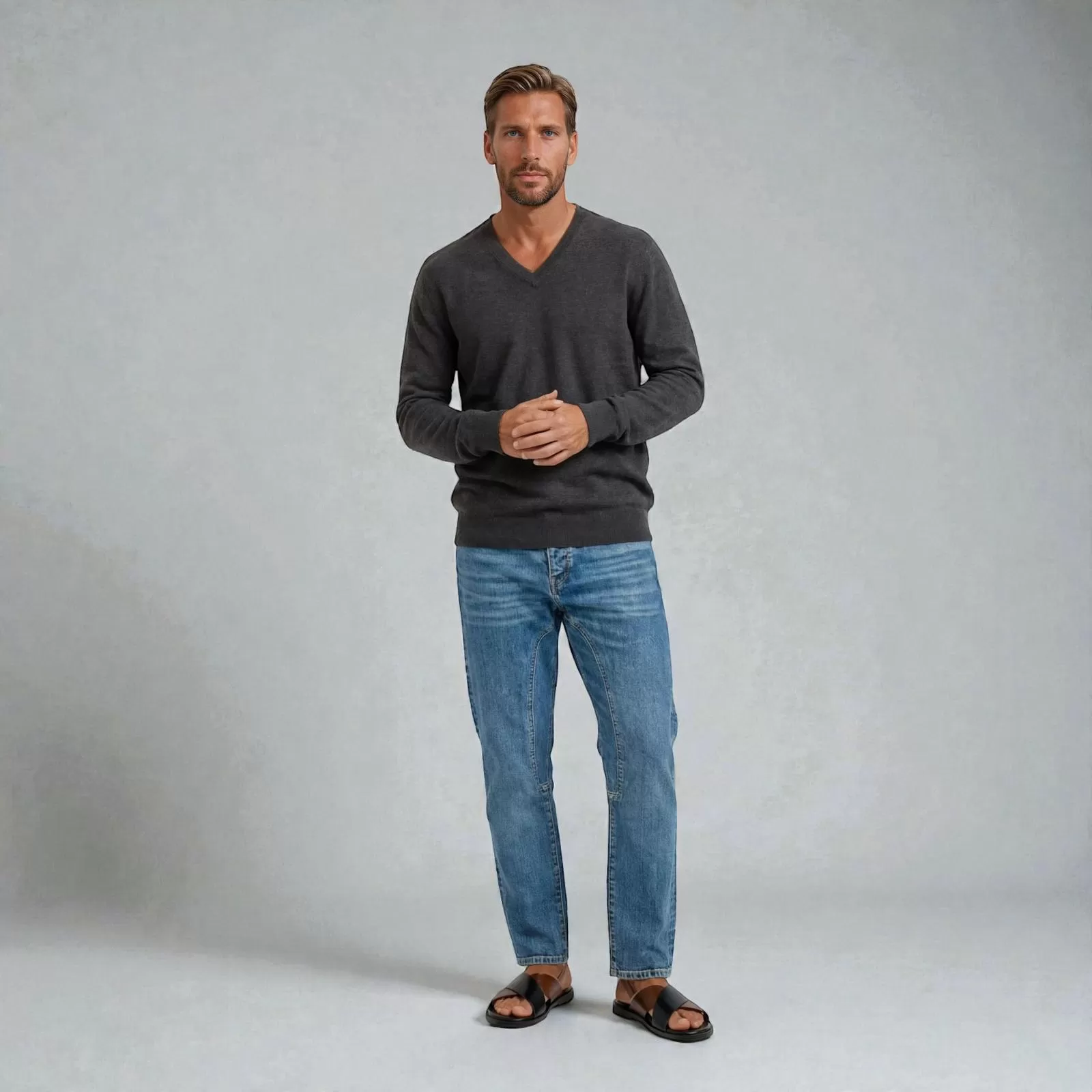El Jersey de Cachemir Krono de Cuello en V en color Charcoal está confeccionado en Italia con cachemir premium ultra suave, diseñado para acompañar la vida del polo dentro y fuera del campo. Representa una forma de vestir sobria, cómoda y atemporal.