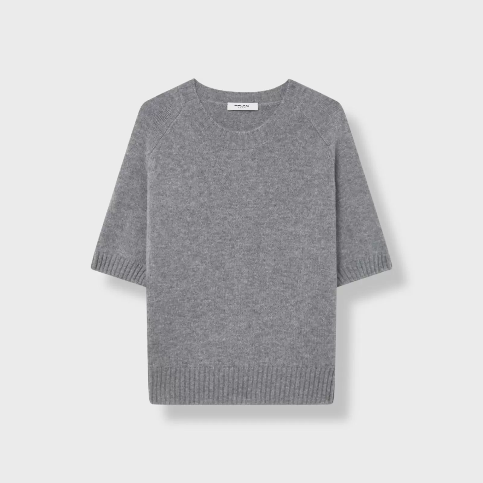 El tono gris, versátil y atemporal, combina fácilmente con vaqueros, pantalones más formales o prendas de cachemir a juego, logrando un estilo refinado y relajado. Una prenda esencial para mujeres que valoran el lujo sutil y el diseño inspirado en el polo moderno.