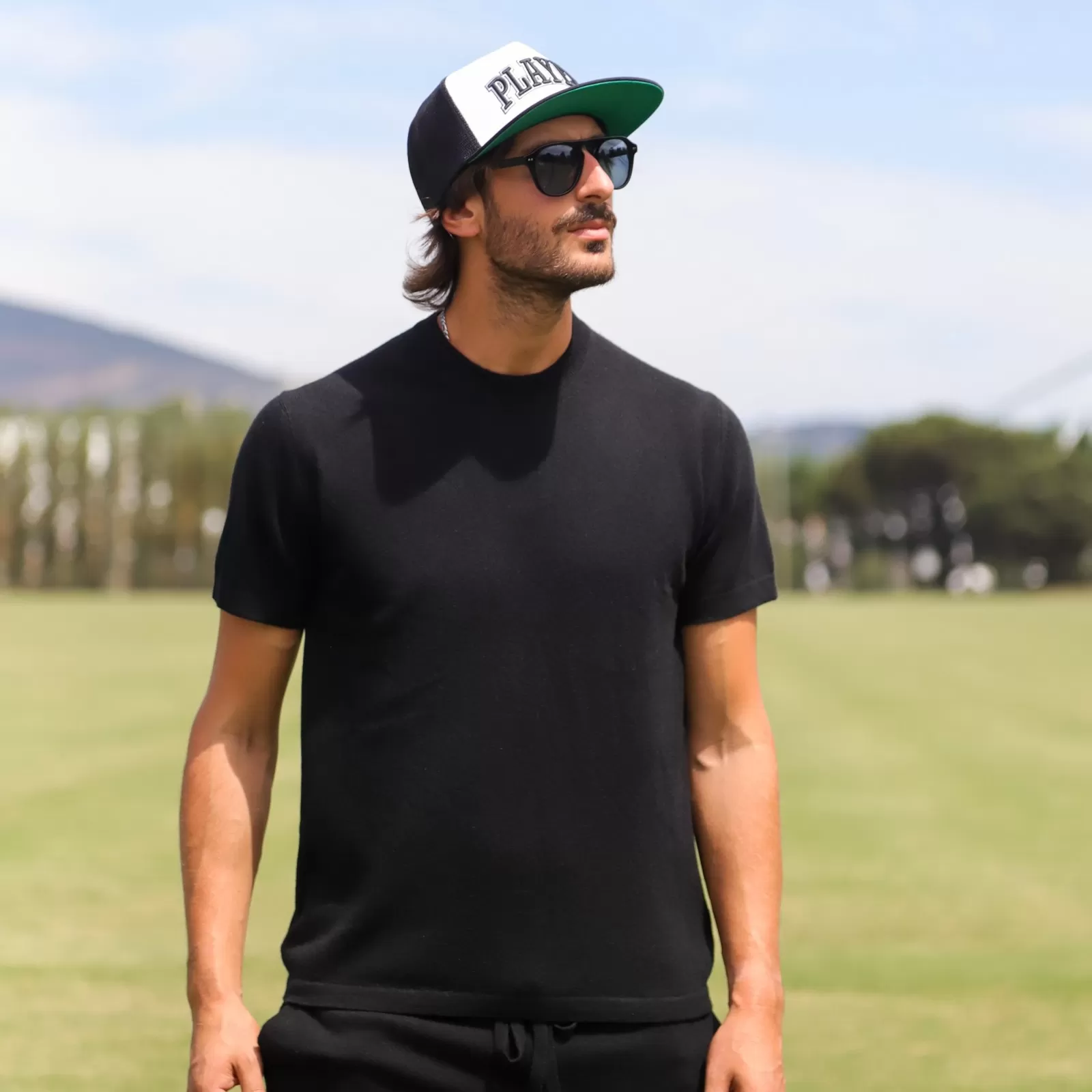La camiseta de cachemir Krono en negro está confeccionada en Italia con el más fino cachemir puro, combinando la comodidad del sportswear con la elegancia discreta del estilo de vida del polo. Extremadamente suave y transpirable, está pensada para acompañar tanto las mañanas en el club como los momentos más relajados fuera del campo.