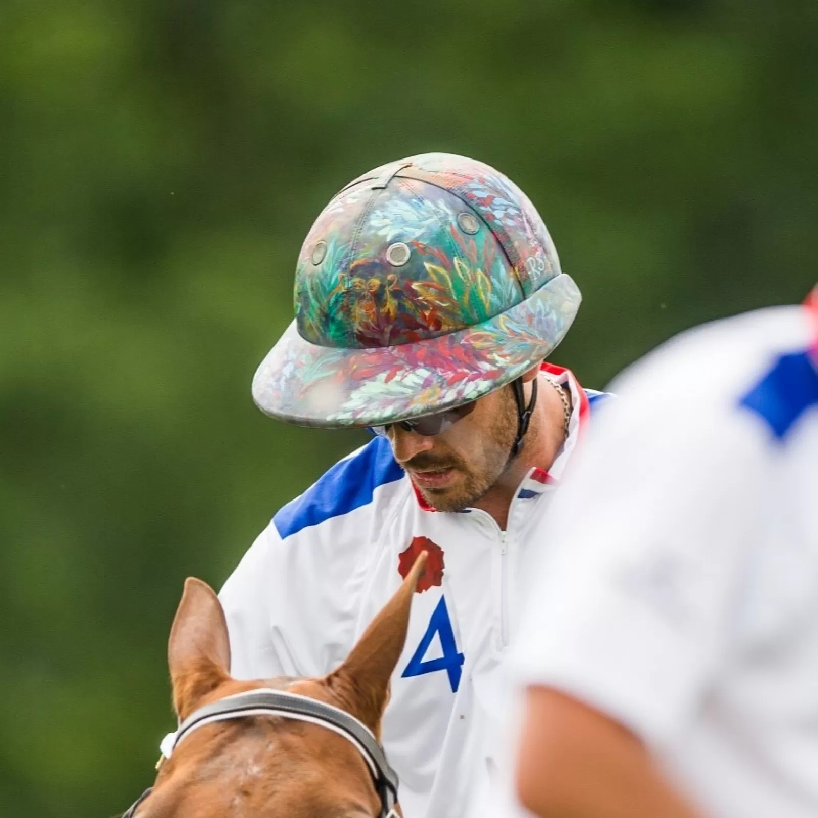 En KRONO POLO, un casco no es simplemente protección. Es presencia. Es identidad. Es legado llevado al campo. Nuestro Casco Artístico a Medida transforma el rendimiento en expresión personal — una obra única pintada a mano por artistas seleccionados con los que colaboramos en Argentina o Francia.