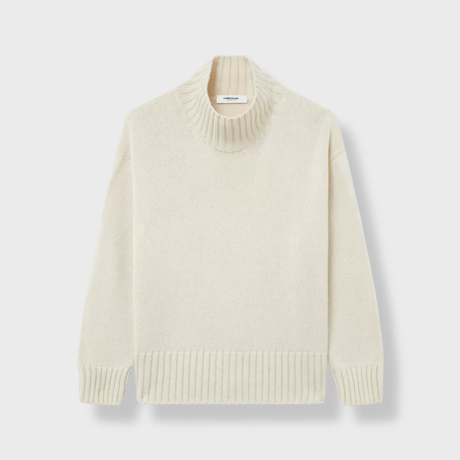 Jersey de Cuello Alto de Cachemira Beige Claro