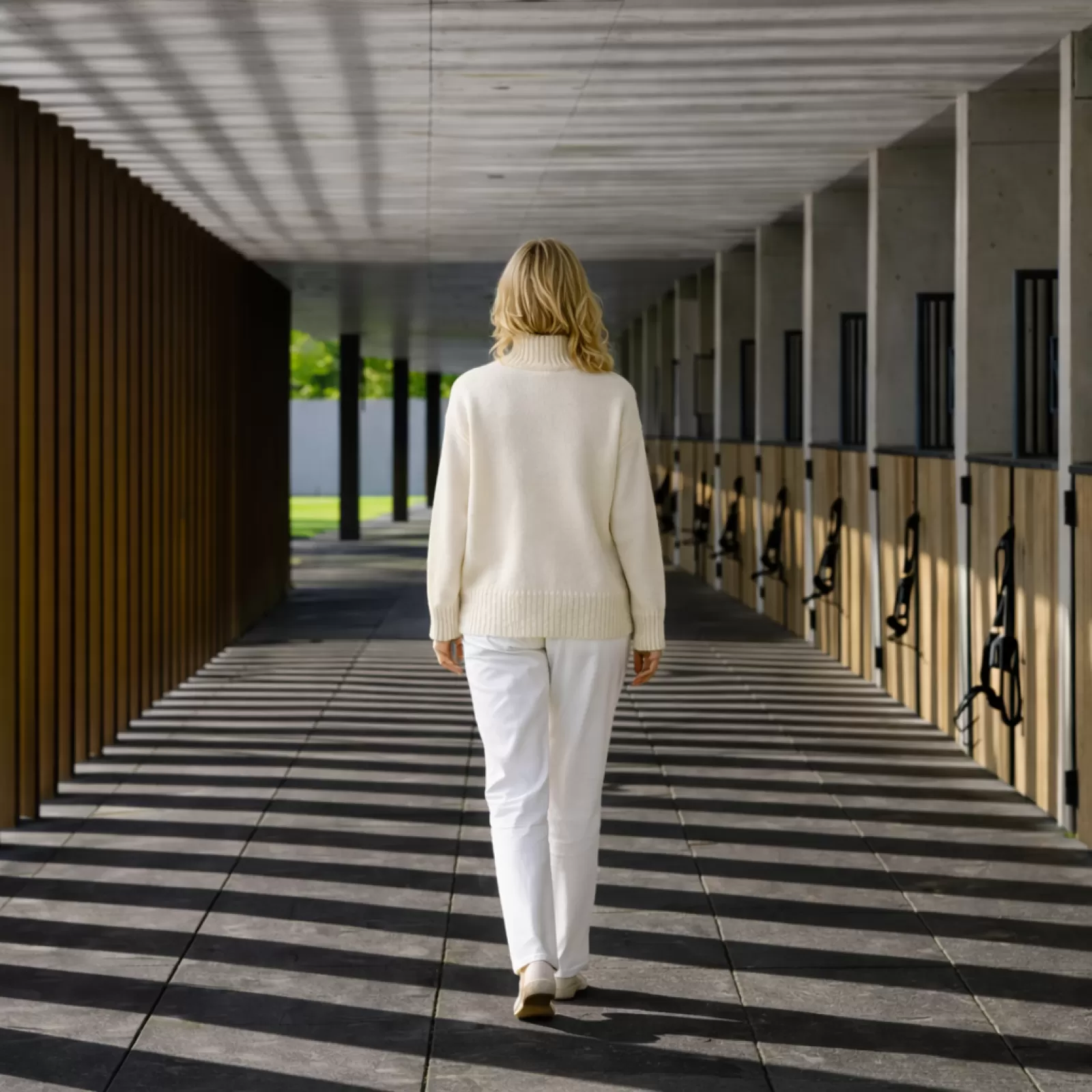 Suave, elegante y fiel al espíritu del polo, este cuello alto beige claro es un básico contemporáneo — pensado para el invierno más allá del campo.