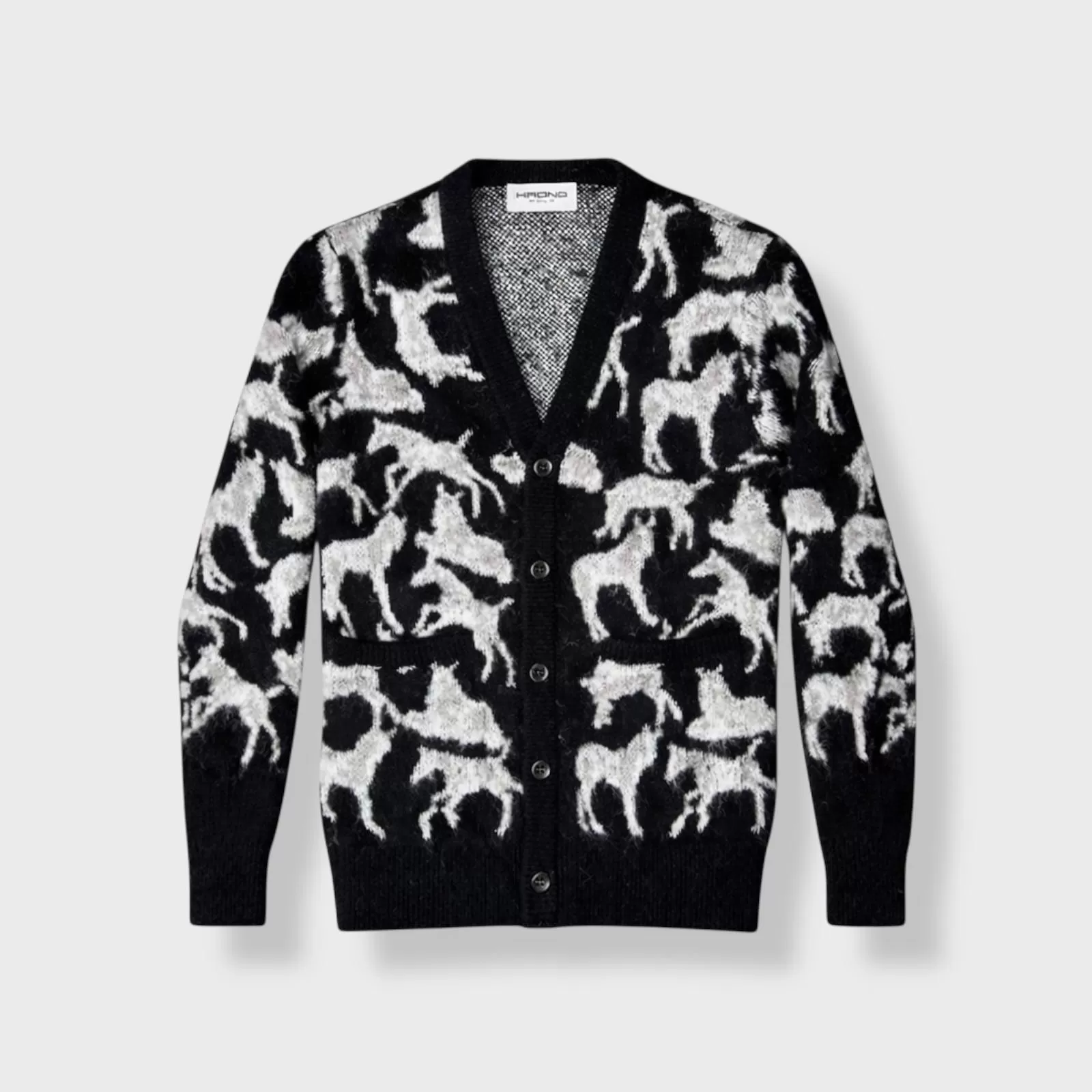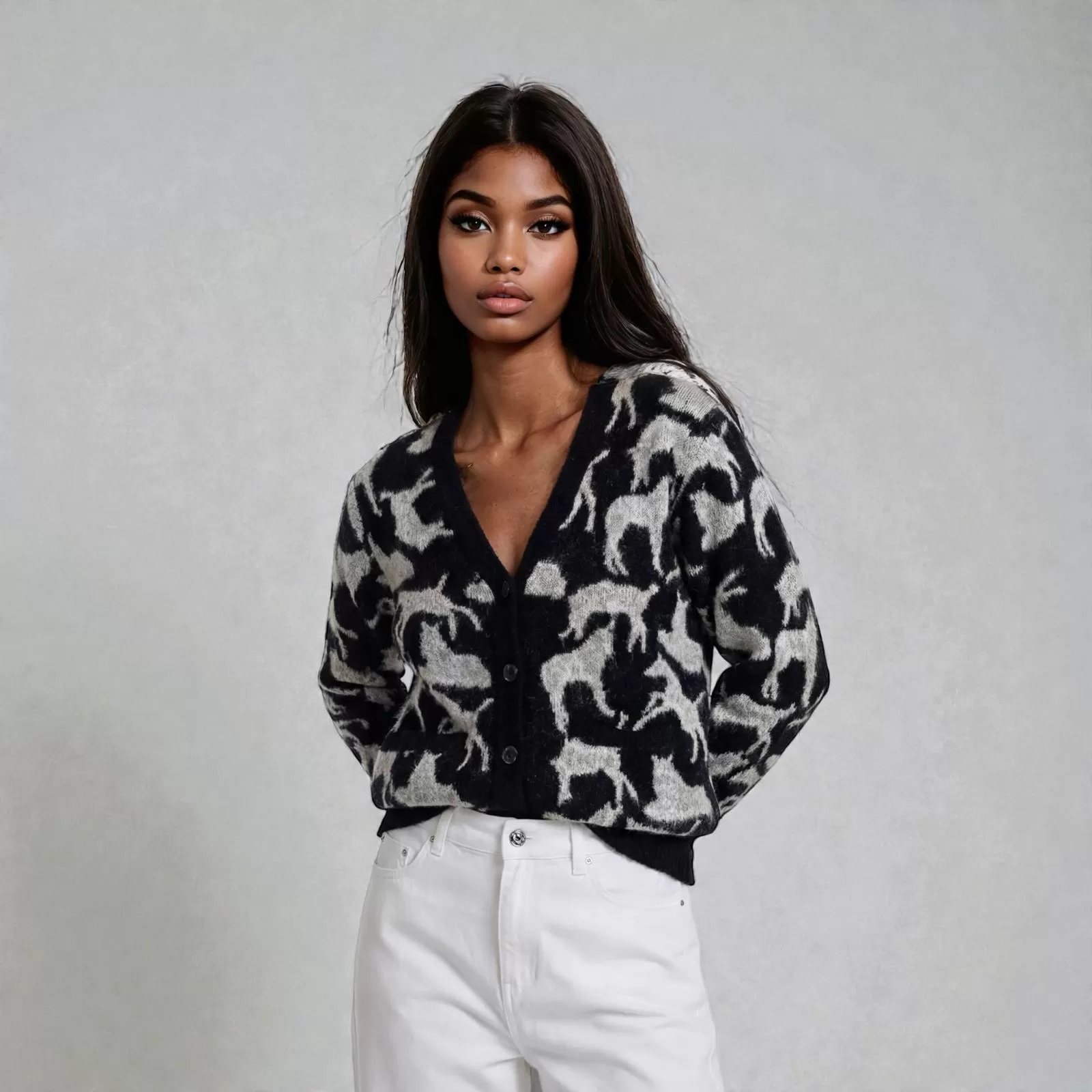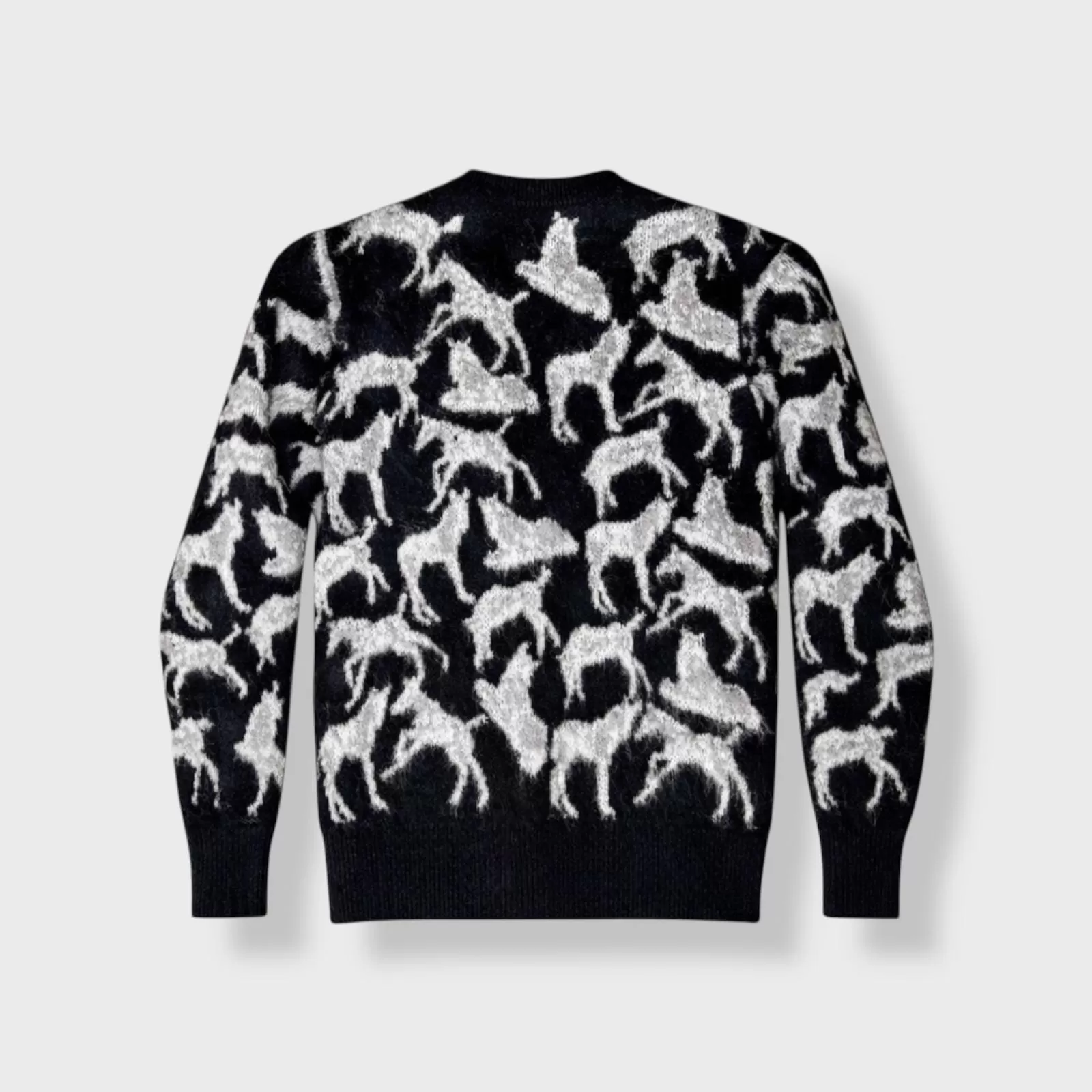• Diseño en intarsia con potros en movimiento, delicado y femenino