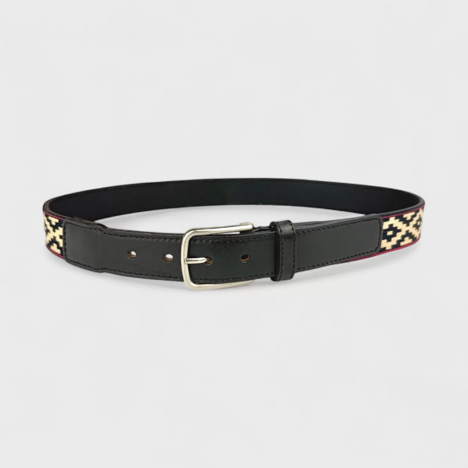 El patrón tejido que adorna la superficie del cinturón es un logro magistral de la artesanía, capturando el espíritu de unidad y tradición que late en el corazón del estilo de vida gaucho. La interacción de los hilos negros y blancos evoca la gracia y armonía exhibidas en el campo de polo, haciendo eco de los corceles galopantes y los movimientos precisos de los jugadores.