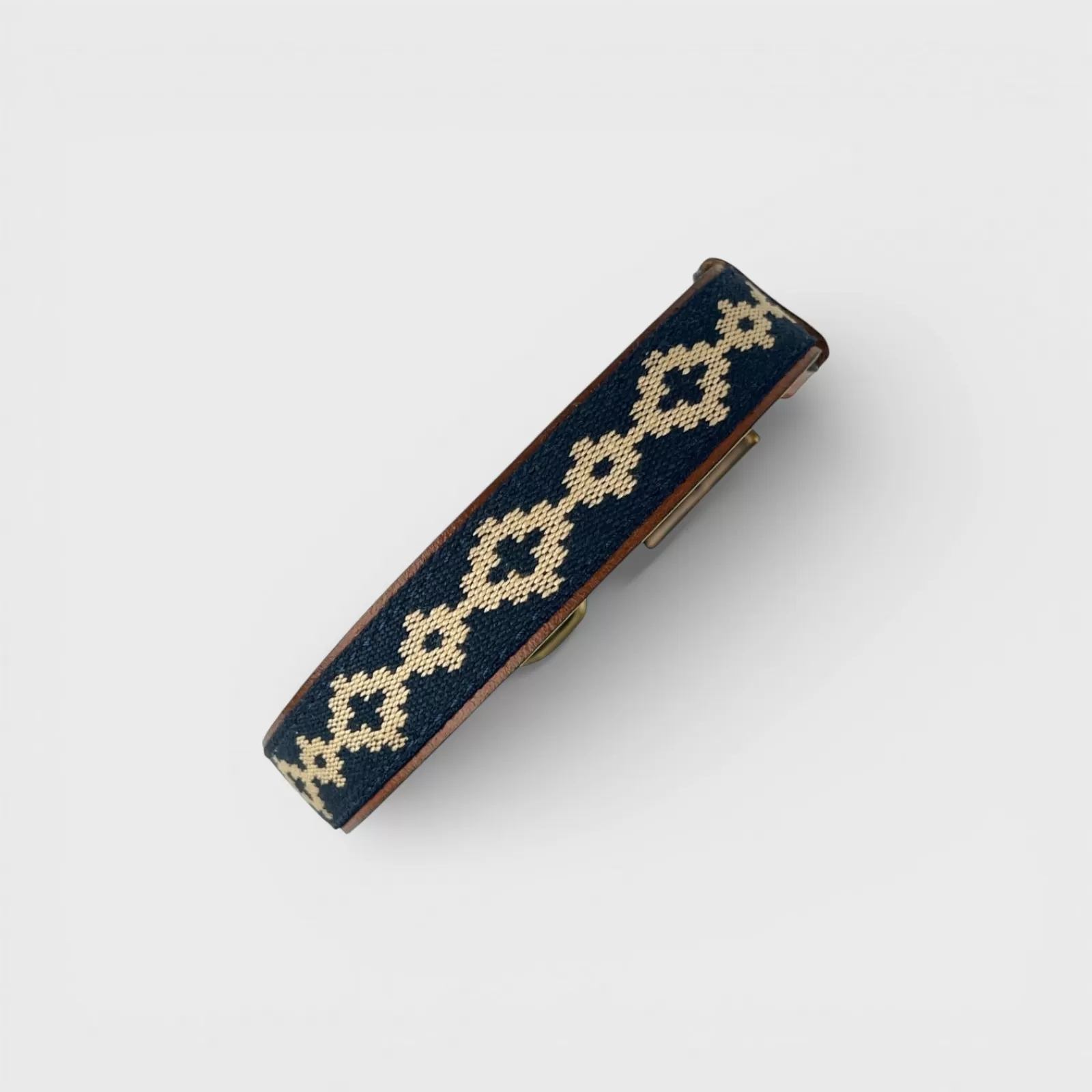 Eleva el estilo de tu compañero canino con nuestro collar para perros Krono Polo inspirado en los cinturones gauchos en color azul. Hecho a mano en Argentina, este collar presenta tonos azul profundo combinados con motivos tradicionales gauchos que reflejan la auténtica herencia de las pampas argentinas. Deja que tu mascota lleve consigo un pedazo de tradición en cada paseo, combinando comodidad y artesanía de forma natural. Descubre una elegancia inspirada en el espíritu de la pampa.