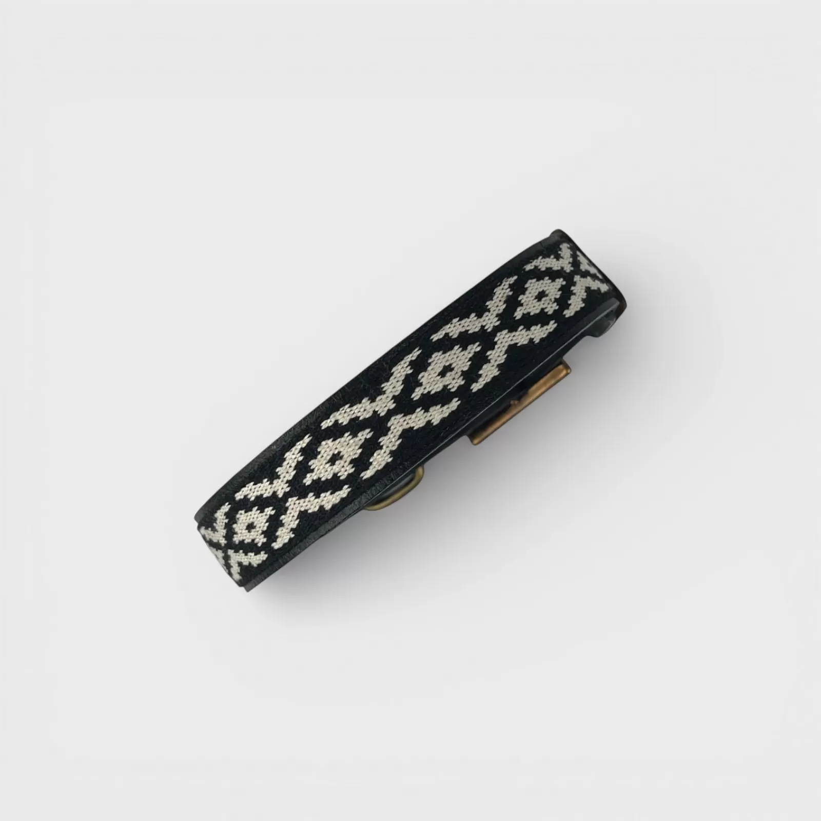 Eleva el estilo de tu compañero canino con nuestro collar para perros inspirado en los cinturones gauchos de Krono Polo. Hecho a mano en Argentina, este collar captura la esencia del estilo de vida gaucho a través de sus intrincados motivos. Deja que tu mascota lleve consigo un pedazo de herencia en cada paseo, combinando comodidad y tradición de forma natural. Descubre una elegancia que evoca las pampas.