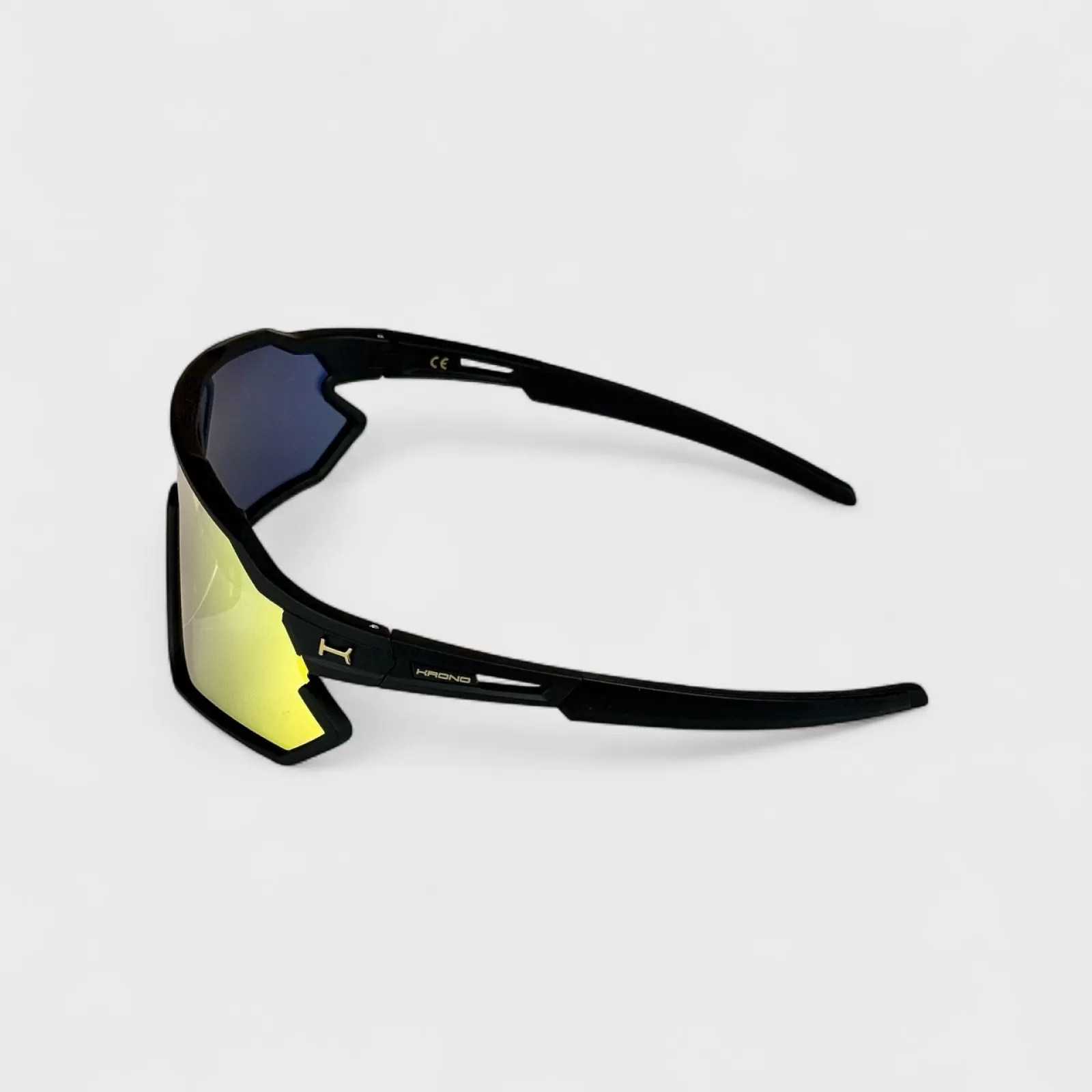 Las Krono Polo Guard – Edición Negro/Oro ofrecen la máxima protección con un acabado refinado y lujoso. Su montura tipo máscara en negro intenso está realzada por logotipos Krono en dorado y lentes doradas a juego, creando una identidad llamativa que une elegancia y rendimiento.