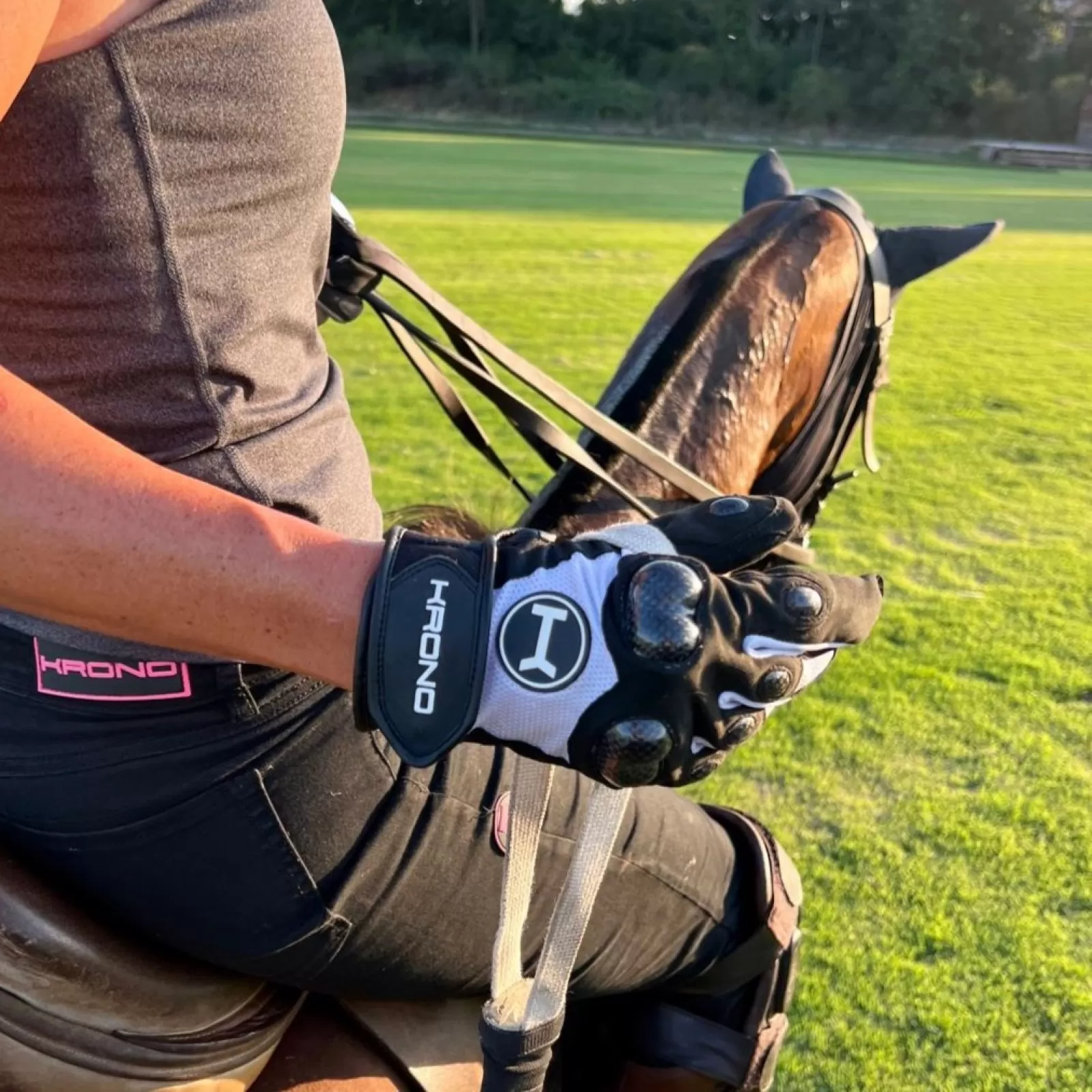 Experimenta una protección y control incomparables con los guantes de polo High Goal Carbon de Krono Polo. Diseñados para jugadores que exigen máximo rendimiento y seguridad, incorporan inserciones de fibra de carbono estratégicamente ubicadas en los nudillos, el índice y el pulgar, ofreciendo protección precisa frente a los impactos del taco o la pelota.
