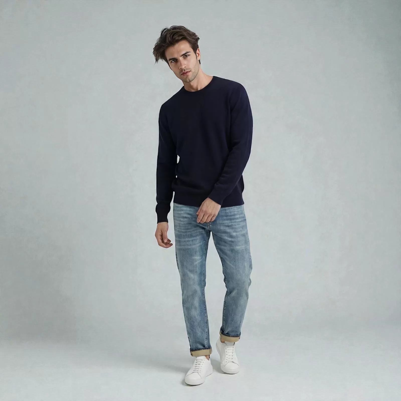 Confeccionado en Italia con la más fina cachemira ultra suave, el jersey Krono de cuello redondo en azul marino refleja una elegancia atemporal inspirada en el estilo de vida polo. Su tono profundo y clásico lo convierte en una prenda esencial tanto para la ciudad como para los viajes y el día a día.