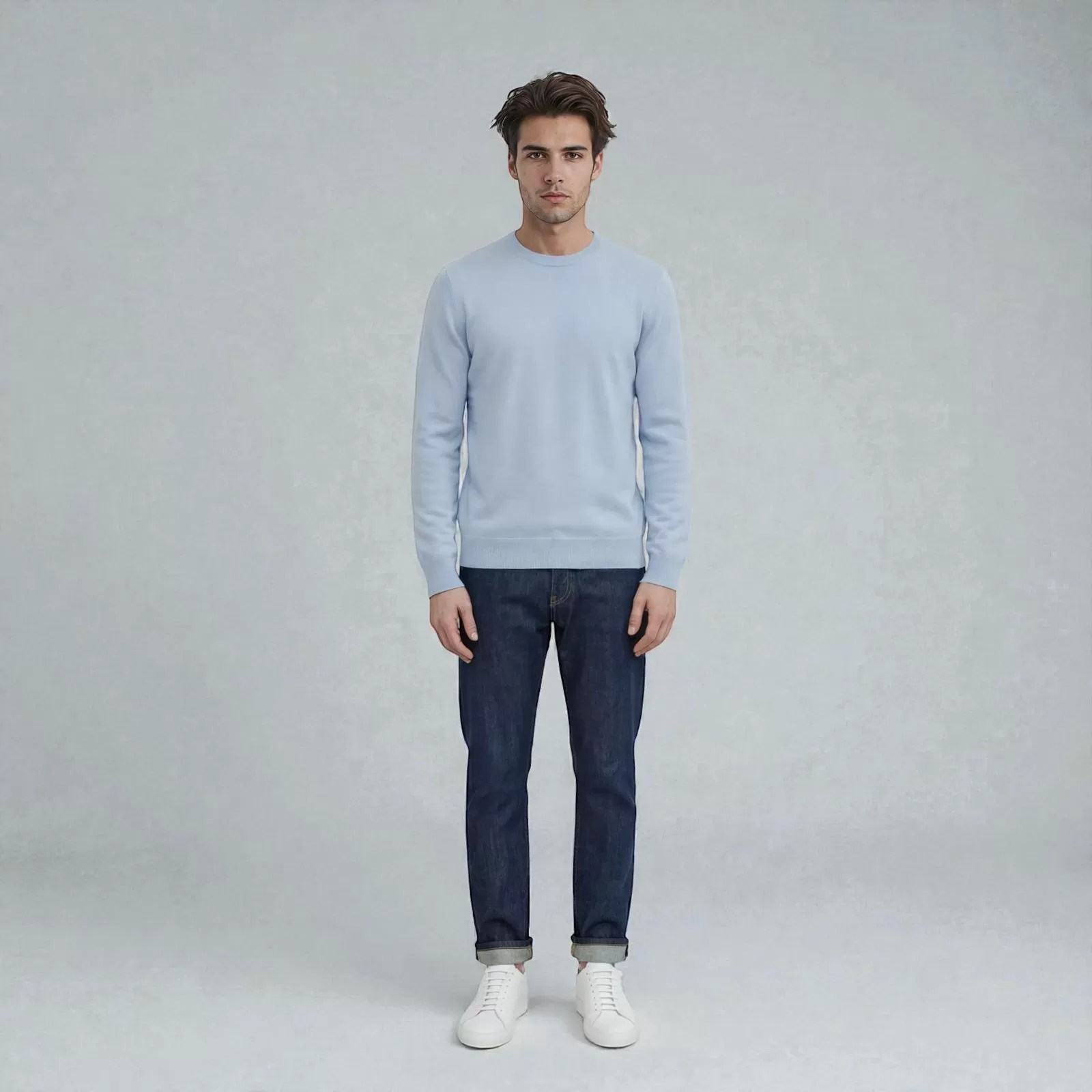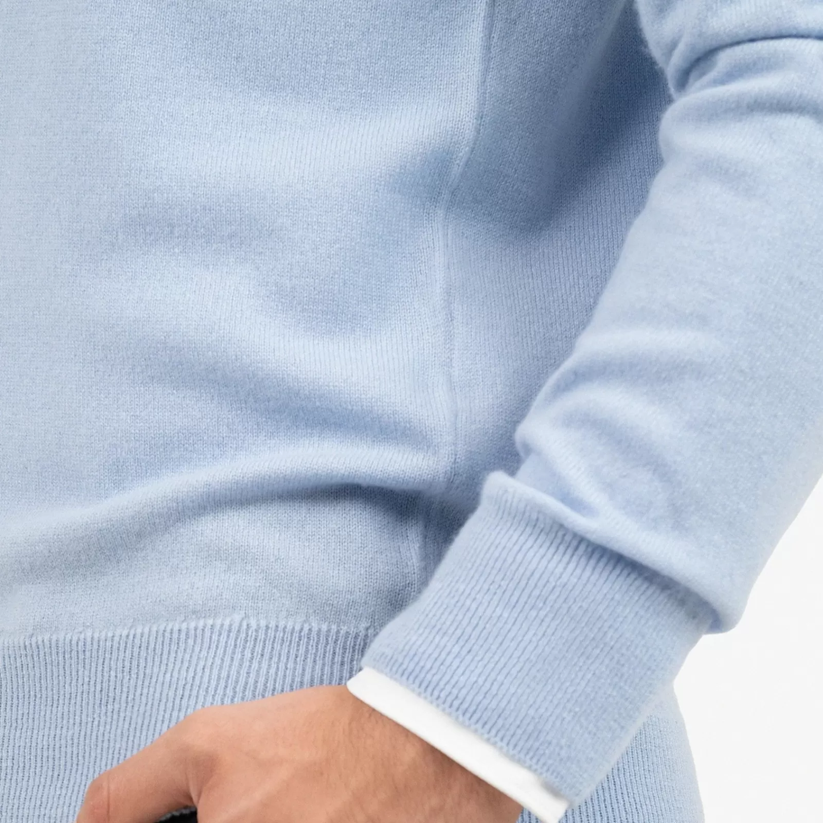 El jersey Krono de cuello redondo en azul claro está confeccionado en Italia con la más fina cachemira ultra suave. Inspirado en el estilo de vida del polo, combina elegancia relajada y comodidad diaria, ideal para un ritmo de vida activo y sofisticado.