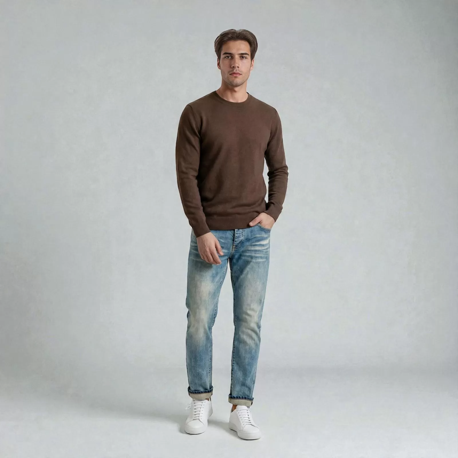 Confeccionado en Italia con la mejor cachemira ultra suave, el jersey Krono de cuello redondo en color marrón refleja una elegancia sobria inspirada en el estilo de vida del polo. Su tono cálido remite a materiales naturales, tradición y sofisticación atemporal.
