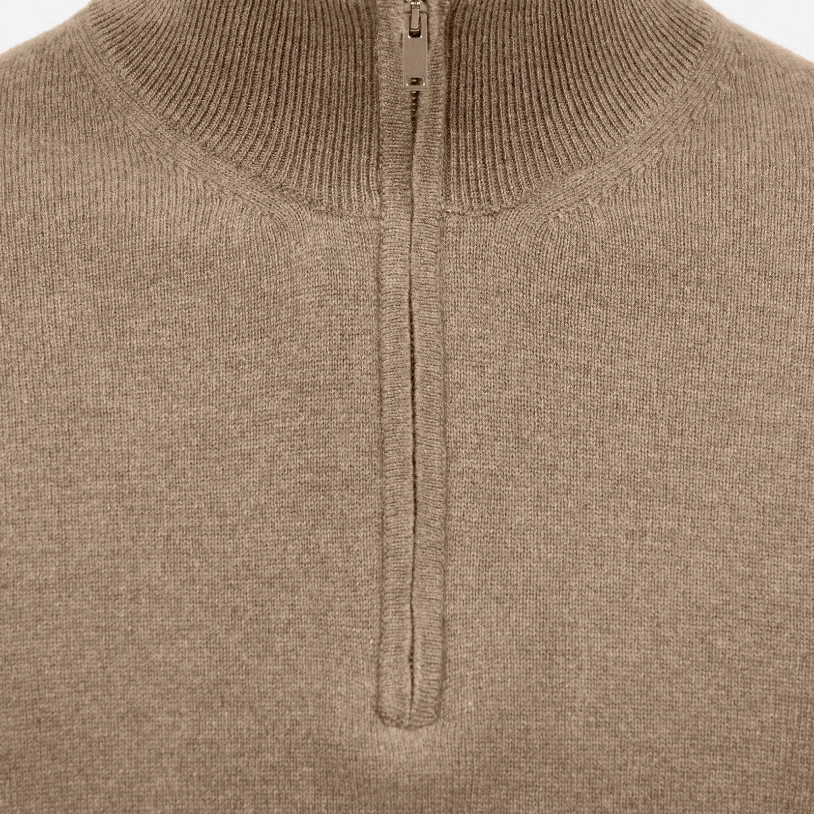 Jersey de Cachemira con Quarter Zip Marrón Claro