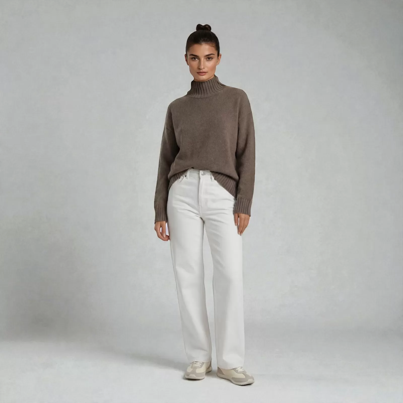 Jersey de Cuello Alto de Cachemira Marrón