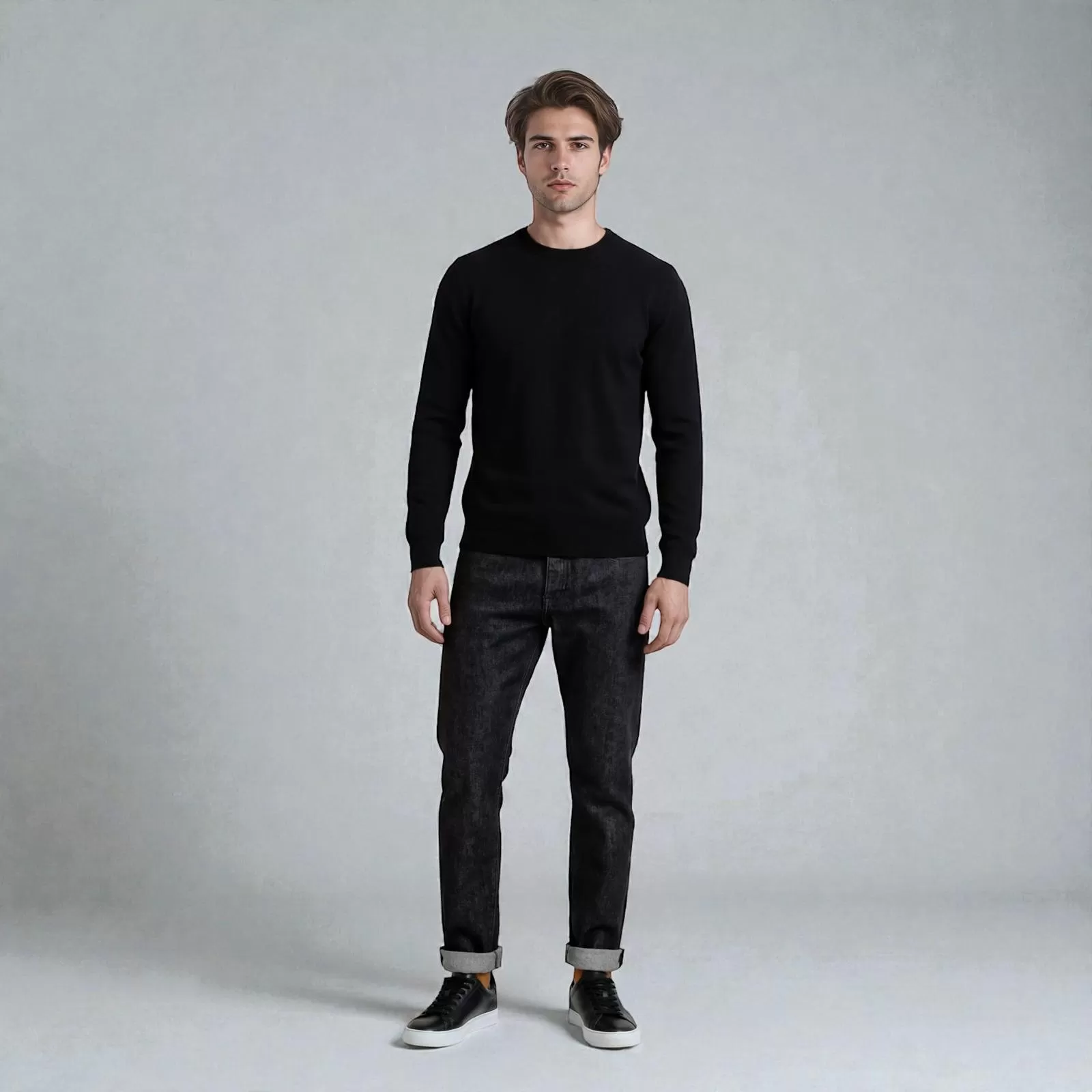 Jersey de cuello redondo de cachemira negro