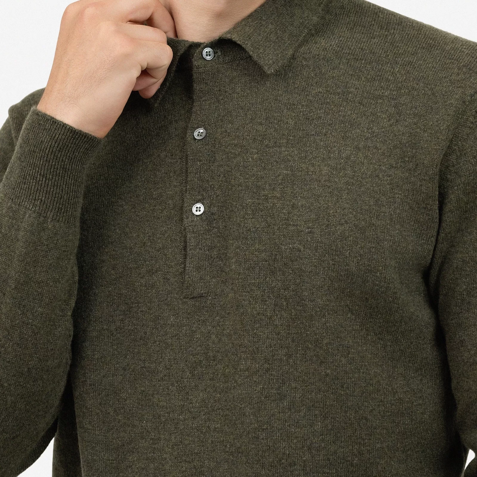 ¿Qué puede ser más esencial que un polo clásico de cachemira? Esta versión en verde está tejida en la más fina cachemira pura, ofreciendo un estilo distinguido con una sensación lujosa y natural. Su tono verde aporta profundidad y sofisticación, inspirado en un estilo de vida elegante más allá del campo de polo.