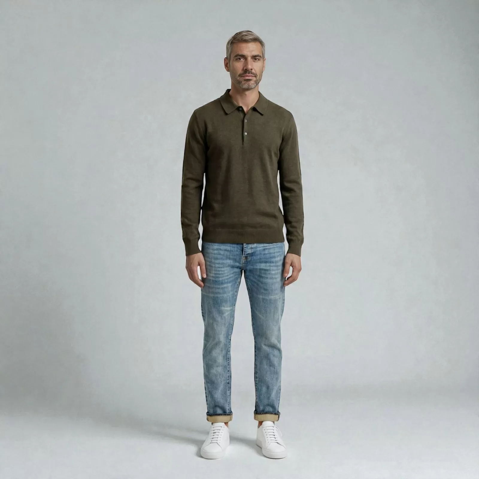Diseñado para el día a día de un jugador de polo —en la ciudad, de viaje o en momentos relajados— destaca por sus detalles cuidadosamente elaborados: tapeta con tres botones de nácar y acabados acanalados bien estructurados en puños y bajo. Cálido, ligero y extremadamente suave, es una prenda versátil para cualquier ocasión.