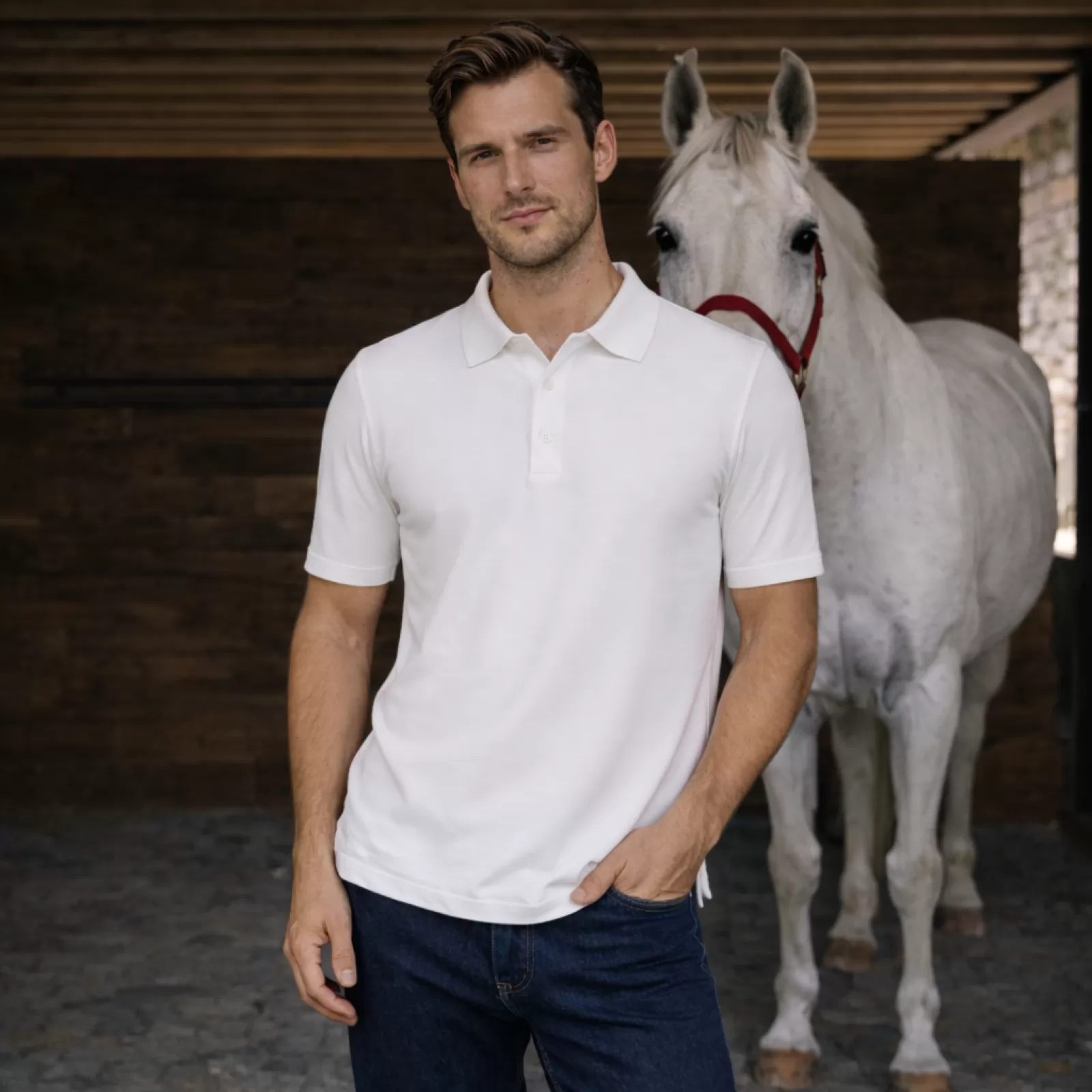 El color blanco aporta una sensación de pureza, frescura y atemporalidad. Fácil de combinar con pantalones de vestir, vaqueros o bajo prendas de punto, es una pieza clave del armario polo moderno.