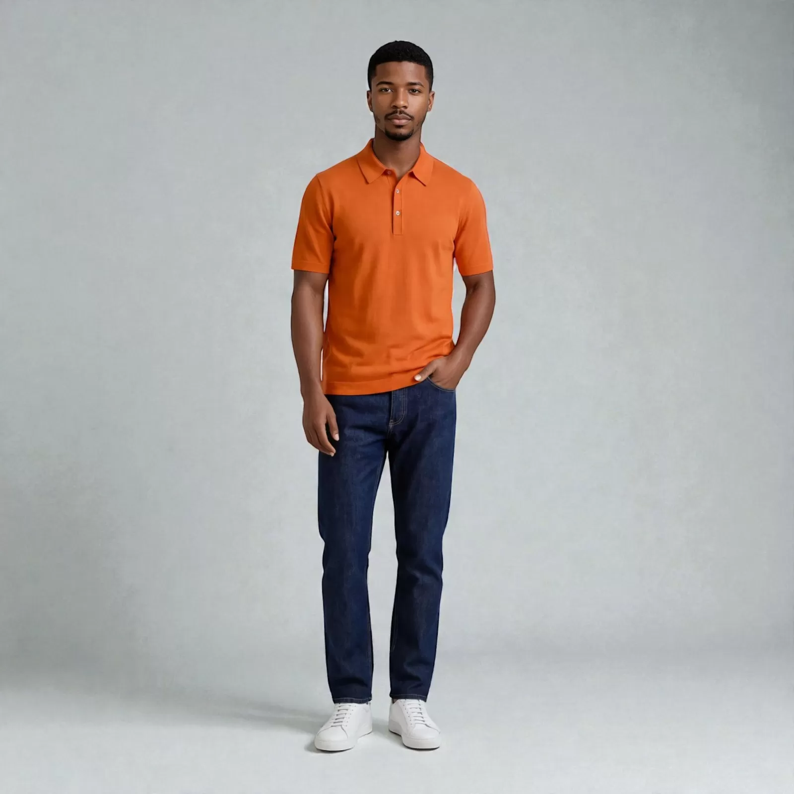 Confeccionado con el mejor algodón Giza egipcio, el polo de algodón Giza color naranja eleva un básico atemporal con un enfoque elegante y contemporáneo. Suave al tacto, con un brillo natural y una resistencia excepcional, el algodón Giza garantiza comodidad y calidad duradera.