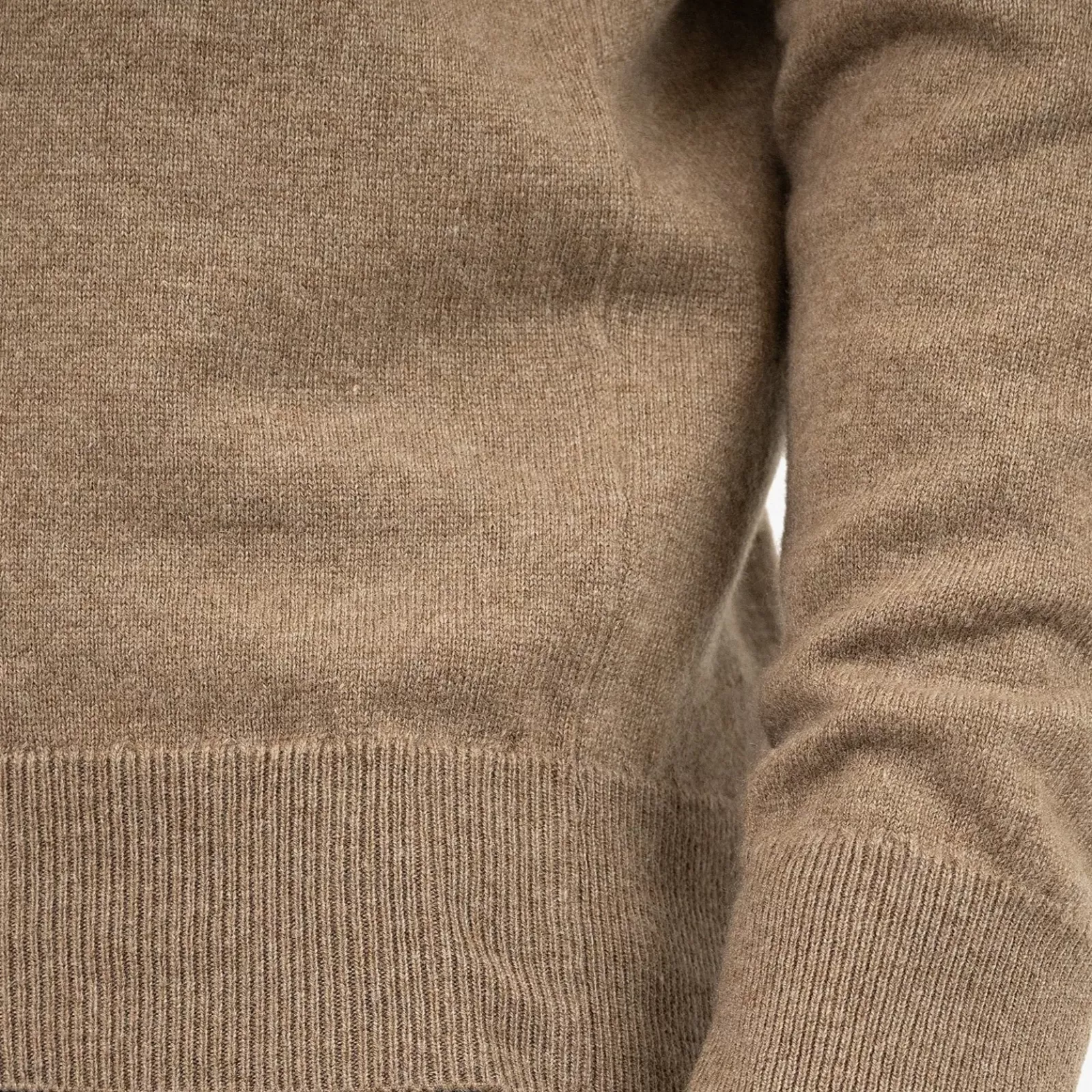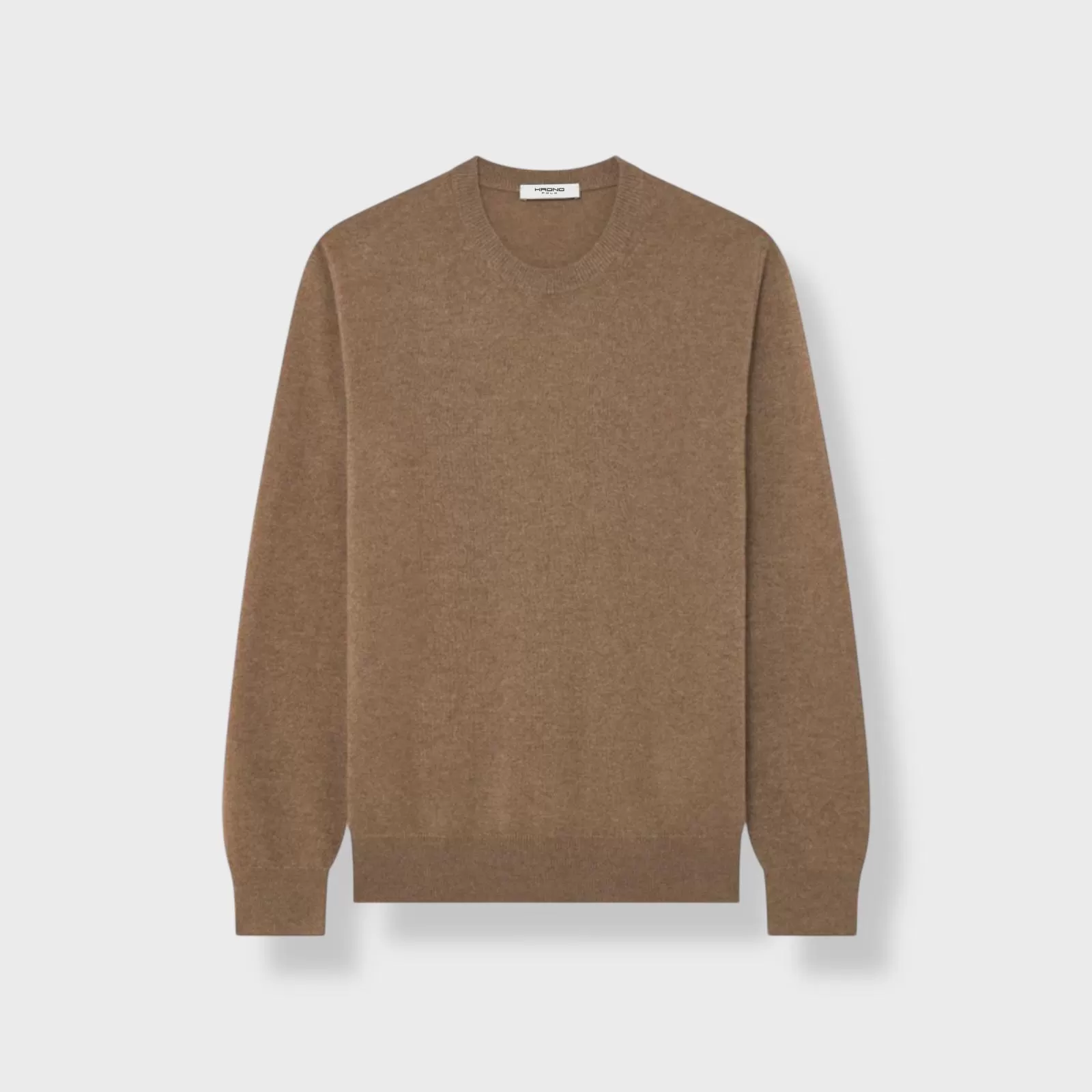 El jersey de cachemira Krono de cuello redondo en color marrón claro está confeccionado en Italia con la más fina cachemira, combinando suavidad excepcional y elegancia natural. Su tonalidad cálida se inspira en el estilo de vida del polo, evocando la piel, las caballerizas y una estética clásica y sofisticada.