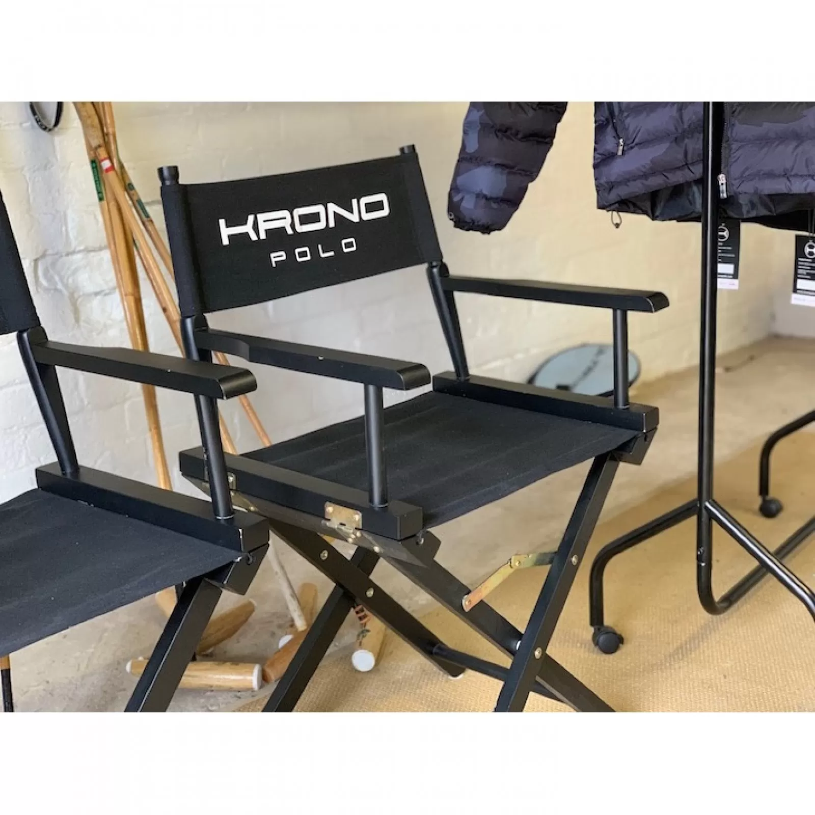 Las sillas Krono Polo son muy resistentes para soportar el calor y las inclemencias del tiempo en el campo de polo. Están disponibles en madera barnizada natural, negro brillante, blanco brillante o nogal (40€ extra). La lona está disponible en varios colores y se puede personalizar con el nombre de su equipo.
