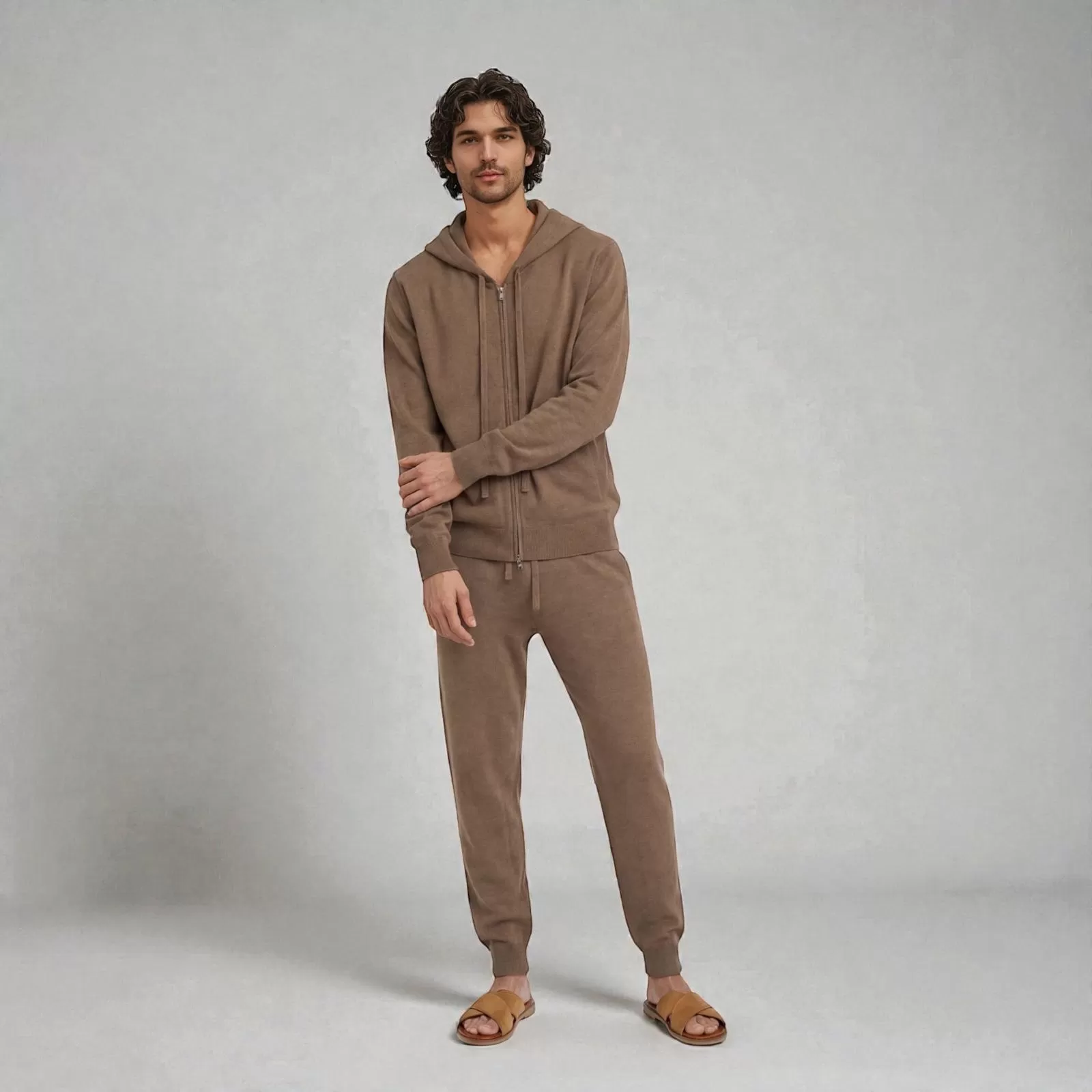 Sudadera con capucha y Cremallera de cachemira Marrón Claro